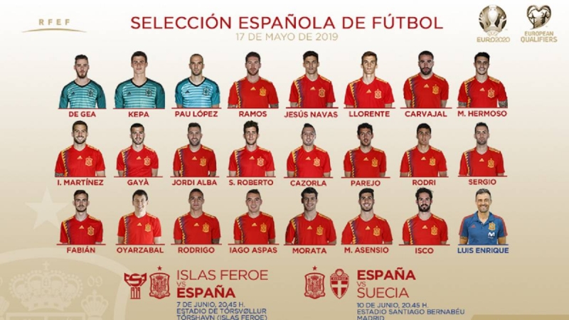สเปน มีโปรแกรมลงทำศึก ยูโร 2020 รอบคัดเลือกกับ หมู่เกาะแฟโร ที่ทอร์ชาฟน์ ในวันที่ 7 มิถุนายนนี้ ต่อด้วยเกมเปิด'ซานติอาโก้ เบร์นาเบว'รับมือ สวีเดน อีก 3 วันหลังจากนั้น