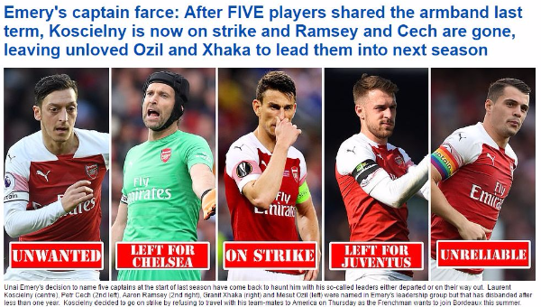 อูไน เอเมรี่ เฮดโค้ชอาร์เซน่อลมีเรื่องปวดหัวไม่สามารถหากัปตันทีมคนใหม่นำทัพฤดูกาลหน้าหลัง โลร็องต์ กอสซิแอลนี่ กัปตันทีมจอมเก๋าออกอาการงอแงจนไม่ร่วมทีมไปทัวร์ปรีซีซั่นที่อเมริกา