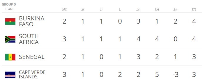 ตารางคะแนน ฟุตบอลโลก 2018 รอบคัดเลือก รอบสาม โซนแอฟริกา กลุ่ม ดี