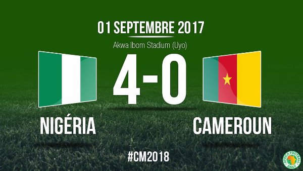 "อินทรีมรกต" ทีมชาติไนจีเรีย โชว์ฟอร์มสุดแกร่งเปิดบ้านไล่อัด "หมอผี" แคเมอรูน ขาดลอย 4-0 ในศึกฟุตบอลโลก 2018 รอบคัดเลือก รอบสาม โซนแอฟริกา เมื่อวันศุกร์ที่ 1 กันยายน ที่ผ่านมา