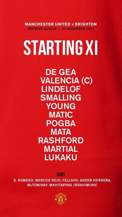 โชเซ่ มูรินโญ่ ผู้จัดการทีม แมนเชสเตอร์ ยูไนเต็ด เผยรายชื่อสิบเอ็ดคนแรกออกมาแล้ว แนวรุกจัดหนักจัดเต็ม ส่งทั้ง โรเมลู ลูกากู, มาร์คัส แรชฟอร์ด, อ็องโตนี่ มาร์กซิยาล ลงพร้อมกัน ในเกมเปิดสนาม โอลด์ แทร็ฟฟอร์ด ต้อนรับการมาเยือนของ ไบรท์ตัน แอนด์ โฮฟ อัลเบียน ทีมน้องใหม่