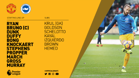 ไบรท์ตัน : แม็ทธิว ไรอัน - บรูโซ่ ซัลตอร์, เชน ดัฟฟี่, ลูอิส ดังค์, กาเอต็อง บง - อ็องโตนี่ น็อกการ์ต, ดาเล่ สตีเฟ่นส์, ดาวี่ พร็อปเปอร์, โซลลี่ มาร์ช - ปาสกาล โกรส - เกล็น เมอร์เรย์