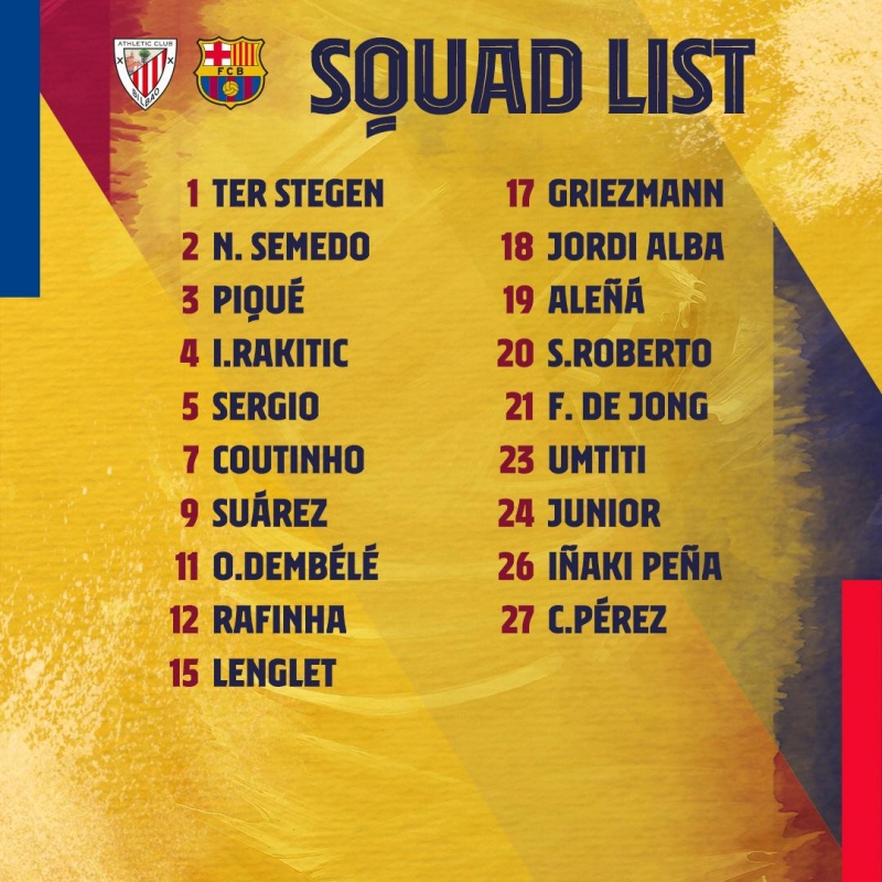 อย่างไรก็ตาม แกนหลักอื่นทั้ง หลุยส์ ซัวเรซ, เซร์คิโอ บุสเก็ตส์, ฟิลิปเป้ คูตินโญ่, อีวาน ราคิติช, เคราร์ด ปิเก้, จอร์ดี้ อัลเบา, มาร์ค อันเดร แทร์ ชเตเก้น และแข้งใหม่อย่าง อ็องตวน กรีซมันน์, เฟร้งกี้ เดอ ย็อง และ จูเนียร์ ฟีร์โป ต่างมีชื่อพร้อมช่วยทีม