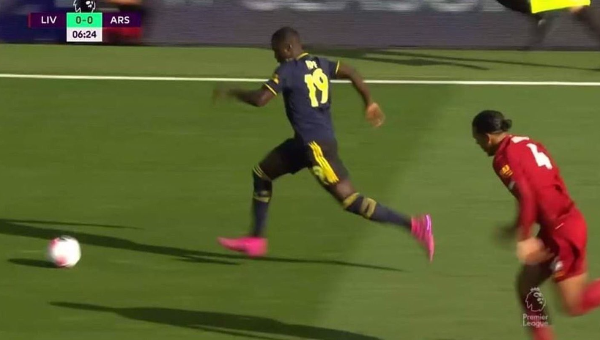 นิโกล่าส์ เปเป้ ปีกค่าตัวแพงอาร์เซน่อล กลายเป็นผู้เล่นคนแรกในรอบ 50 นัดที่เลี้ยงบอลผ่าน เฟอร์กิล ฟาน ไดค์ กองหลังลิเวอร์พูลได้สำเร็จ