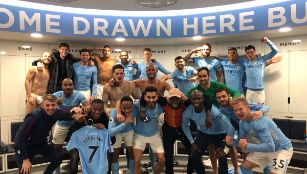 เบนฌาแม็ง เมนดี้ แบ็กซ้ายตัวเก่งของ แมนเชสเตอรื ซิตี้ แสดงอาการดีใจแบบไม่สนใจอาการบาดเจ็บหลังจากวิ่งไปเฮกับเพื่อนร่วมทีมในนัดล่าสุด