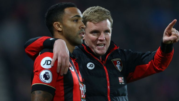 เอ็ดดี้ ฮาว ผจก.ทีม บอร์นมัธ ร่วมแสดงความยินดีกับ คัลลั่ม วิลสัน กองหน้าตัวเก่งซึ่งมีชื่อติดทีมชาติอังกฤษชุดใหญ่พีเรียด ต.ค.นี้ ส่วนข่าวลือเรื่องที่ศิษย์รักคือเป้าหมายเสริมทัพของ แมนฯ ยูไนเต็ด ตลาดม.ค.2020 นั้น ก็พร้อมขวางสุดฤทธิ์