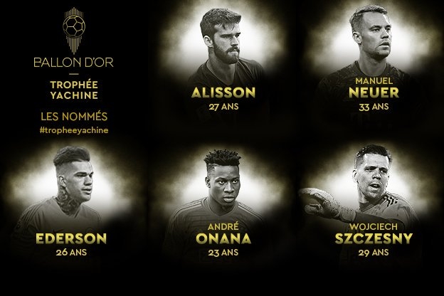 เปิดรายชื่อ 10 ผู้รักษาประตูลุ้นรางวัลยอดเยี่ยมแห่งปีของบัลลงดอร์ ""ยาชีน โทรฟี่" ประจำปี 2019 นำมาโดยตัวเต็งอย่าง อาลีสซง เบ็คเกอร์ มือกาวลิเวอร์พูล