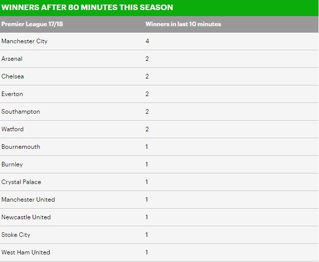 กลับมาที่ 'ซิตี้' ฤดูกาล 2017-18 ลูกทีมของ โจเซป กวาร์ดิโอล่า ทำประตูชนะคู่แข่งช่วง 10 นาทีท้ายไปแล้วสี่ครั้งโดย 3 หนล่าสุดเพิ่งเกิดในรอบสัปดาห์นี้เอง