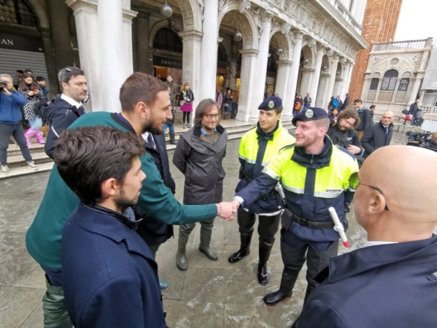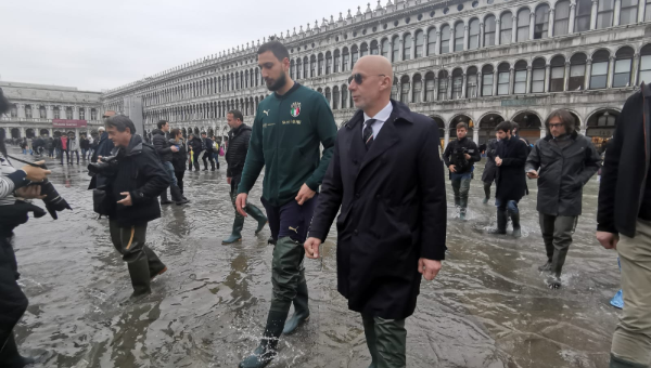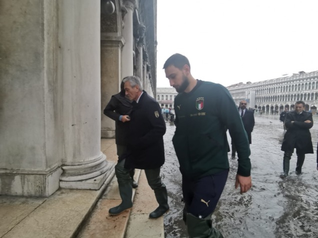 คณะนักเตะ-ผู้บริหารทีมชาติอิตาลี นำโดยตำนานแข้ง จานลูก้า วิอัลลี่, ประธานสหพันธ์ฟุตบอลแห่งชาติ (เอฟเอจีซี) กาบริเอเล่ กราวิน่า และ นายด่าน จานลุุยจิ ดอนนารุมม่า ลุยน้ำท่วมไปปลอบขวัญผู้ประสบภัย ณ เมืองเวนิส เชื่อว่าสถานการณ์จะดีขึ้นในไม่ช้า