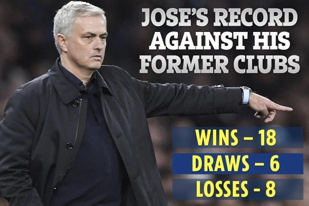 สำหรับสถิติการดวลกับทีมเก่าของ มูรินโญ่ ถือว่าดีมากเพราะจากทั้งหมด 32 เกมที่ผ่านมา มูรินโญ่ พาทีมที่เขาคุมเอาชนะทีมเก่าที่เคยทำงานด้วยได้ถึง 18 เกม ที่เหลือแบ่งเป็นเสมอ 6 แพ้ 8 นัด