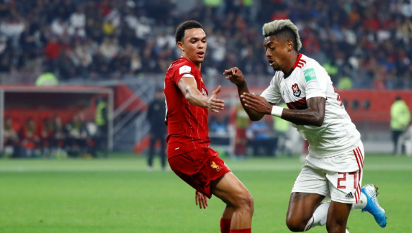 เทรนท์ อเล็กซานเดอร์-อาร์โนลด์ แบ็กขวา ลิเวอร์พูล แชมป์ ฟีฟ่า คลับ เวิลด์ คัพ 2019 แสดงความนับถือฝีเท้า บรูโน่ เอ็นรีเก้ กองหน้า ฟลาเมงโก้ ซึ่งแม้เกมนัดชิงฯวานนี้จะพ่ายช่วงต่อเวลาพิเศษ 0-1 แต่ตลอด 120 นาทีสร้างงานเพียบ