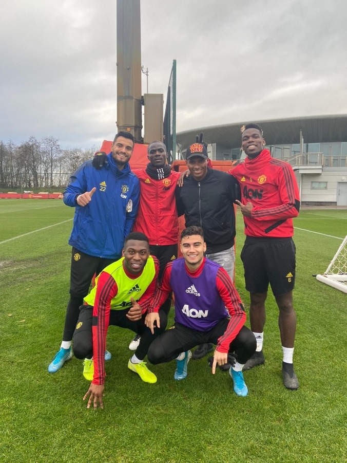 ส่วนอีกรูปในลห้องแต่งตัวร่วมกับ แดเนี่ยล เจมส์, อารอน วาน-บิสซาก้า, มาร์คัส แรชฟอร์ด, เจสซี่ ลินการ์ด, เนมานย่า มาติช, สกอตต์ แม็คโทมิเนย์ และ แอชลี่ย์ ยัง พร้อมแคปชั่น "พบหน้าเกลอเก่า"