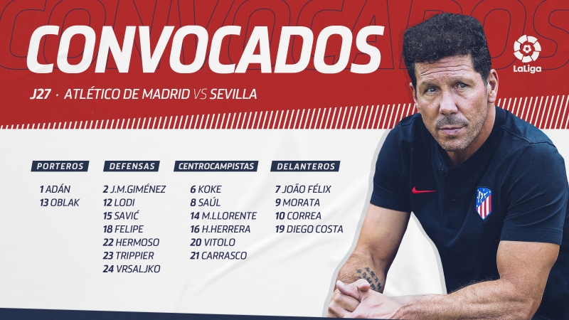 รายชื่อผู้เล่นแอต.มาดริด นัดพบ เซบีย่า