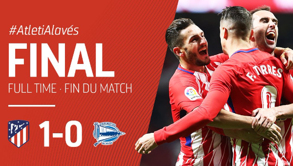 หลังจากนั้นไม่มีประตูเพิ่มจบเกม แอตเลติโก มาดริด เอาชนะ อลาเบส 1-0 เก็บสามแต้มพร้อมขึ้นมาเป็นรองจ่าฝูงได้สำเร็จ