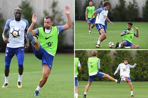 การฝึกซ้อมเมื่อกลางสัปดาห์ของเชลซี แดนนี่ ดริงค์ วอเตอร์ (ซ้าย) เรียกเหงื่อมื้อแรก