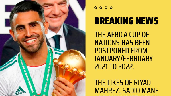 สหพันธ์ฟุตบอลแห่งชาติแอฟริกัน (ซีเอเอฟ) แถลงการณ์เลื่อนการแข่งขัน แอฟริกัน คัพ ออฟเนชั่นส์ ครั้งต่อไปจากเดิม ม.ค.-ก.พ.2021 ไปเป็นปี 2022 เพราะผลกระทบจากโคโรน่าไวรัสระบาดทั่วโลก
