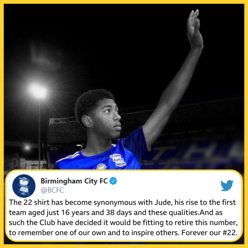 เบอร์มิงแฮม ซิตี้ ประกาศรีไทร์หมายเลข 22 หลัง จู๊ด เบลลิงแฮม ดาวรุ่งตัวเก่งของทีมย้ายออกไปร่วมทีม โบรุสเซีย ดอร์ทมุนด์