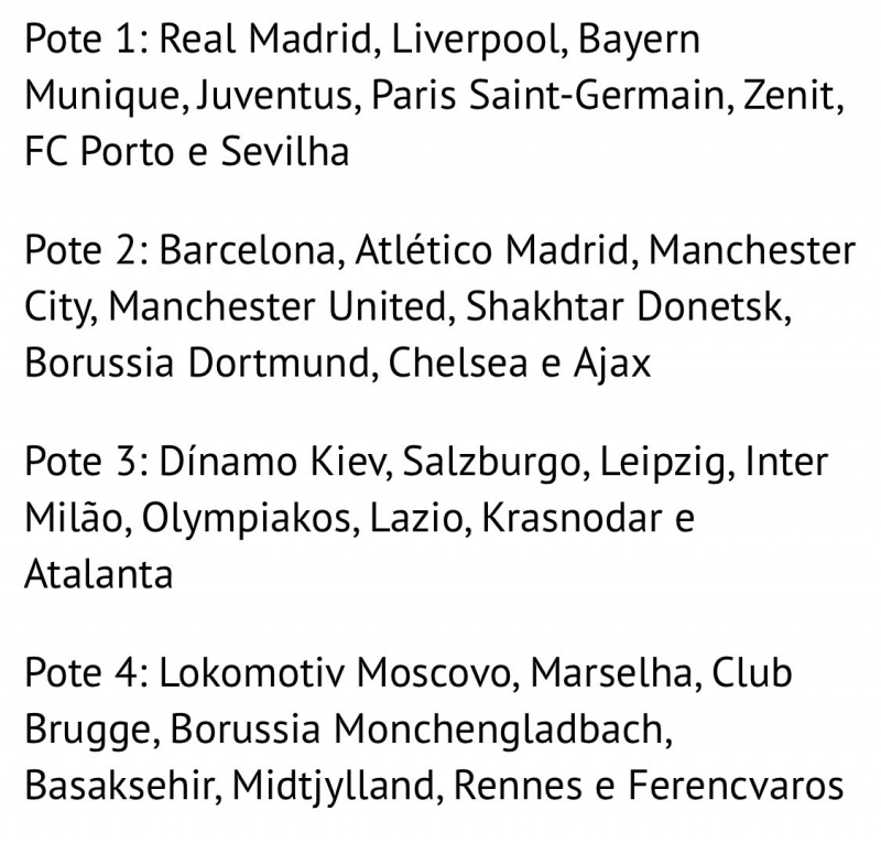 ทีมในแต่ละโถที่จะถูกแบ่งออกเป็น 8 กลุ่ม