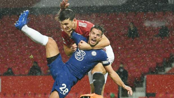 เซซาร์ อัซปิลิกวยต้า กองหลังกัปตันทีม เชลซี ออกอาการเซ็งที่ผู้ตัดสินไม่ยอมแม้แต่จะเช็กวีเออาร์สำหรับจังหวะที่อาจเป็นจุดโทษของทีมตน ในเกมบุกเสมอ แมนฯ ยูไนเต็ด 0-0