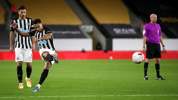 จาค็อบ เมอร์ฟี่ ตัวริมเส้นของ นิวคาสเซิ่ล ออกอาการปลื้มสุดขีดกับฟรีคิกสำคัญที่ยิงช่วยทีมก่อนหมดเวลาแบ่งแต้มจาก วูล์ฟส์ ได้สำเร็จ