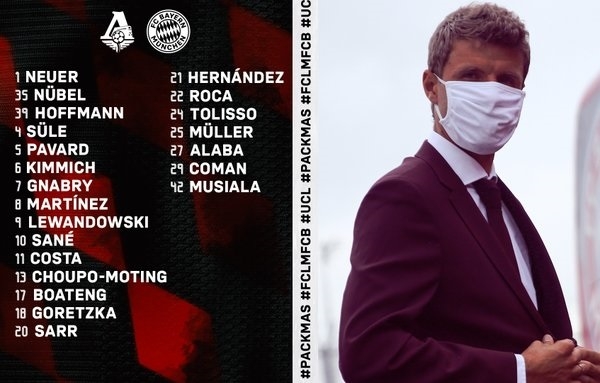 บาเยิร์น มิวนิค ประกาศรายชื่อทีมชุดบุกเยือน โลโคโมทีฟ มอสโก ในศึก ยูฟ่า แชมเปี้ยนส์ ลีก วันอังคารนี้ มีชื่อ แซร์ช นาบรี ที่เพิ่งพ้นการกักตัว
