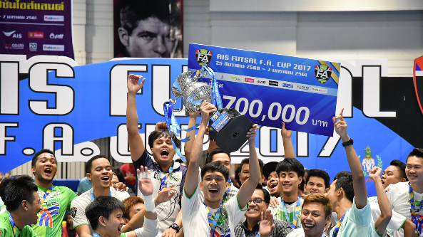 แบงค็อก บีทีเอสตีเจ๊า กรมทางหลวง ในช่วงวินาทีสุดท้าย ก่อนดวลโทษเข้าวิน 9-8 ซิวแชมป์ เอไอเอส ฟุตซอล เอฟเอคัพ 2017 รับเงิน 700,000 บาท พร้อมสิทธิลุยศึกสโมสรชิงแชมป์อาเซียน 2018