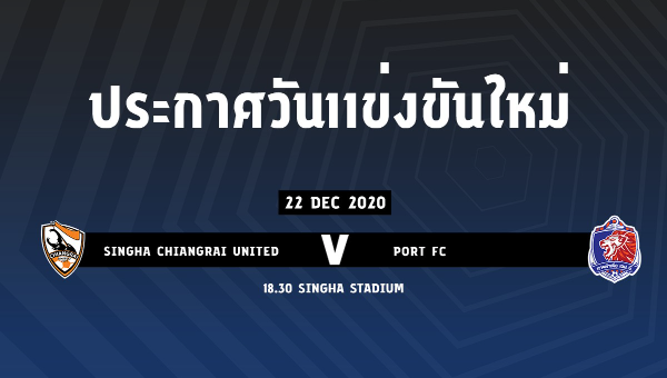 บริษัท ไทยลีก จำกัด เผยกำหนดการแข่งขัน โตโยต้า ไทยลีก นัดสุดท้ายของเลกที่ 1 คู่ระหว่าง สิงห์ เชียงราย ยูไนเต็ด พบ การท่าเรือ เอฟซี ณ สนามสิงห์ สเตเดี้ยม เป็นวันอังคารที่ 22 ธันวาคม 2563