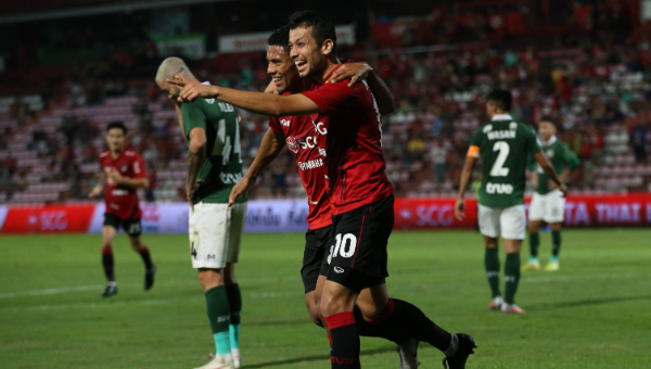 ทีมเยือนเกือบได้ประตูตีเสมอ นาทีที่ 25 จากจังหวะหลุดเข้าไปยิงของ แพทริก ไรเชลท์ แต่บอลยังพุ่งติดเซฟ สมพร ยศ ล้มตัวรับไว้ได้ทันก่อน