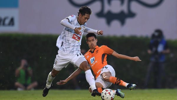 เริ่มนานาทีที่ 5 โอกาสของทีมเยือนสิงห์ เชียงราย ฯ โช จี ฮุน ลองซัดไกลด้วยขวาระยะ 25 หลาบอลไม่ตรงกรอบเหินข้ามคานออกหลังไป