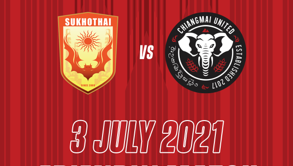 สโมสรเชียงใหม่ ยูไนเต็ด เตรียมยกพลบุกไปอุ่นเครื่องกับทีมแกร่งอย่าง สุโขทัย เอฟซี ในวันเสาร์ที่ 3 กรกฎาคม 2564 ณ ทะเลหลวง สเตเดี้ยม จ.สุโขทัย เริ่มคิกออฟเวลา 18.00 น. โดยเป็นการอุ่นเครื่องแบบปิด และไม่มีการถ่ายทอดสด