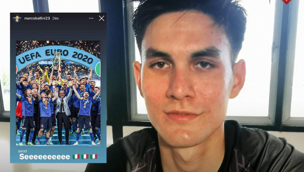 มาร์โก บัลลินี่ เซนเตอร์ฮาล์ฟลูกครึ่งวัย 23 ปี ร่วมแสดงความยินดีกับทีมชาติอิตาลี ที่สามารถคว้าแชมป์ ยูโร 2020 ได้อย่างยิ่งใหญ่ด้วยการดวลลูกจุดโทษเอาชนะอังกฤษ ในรอบชิงชนะเลิศเมื่อช่วงดึกของคืนวันอาทิตย์ที่ 11 กรกฎาคม ที่ผ่านมา