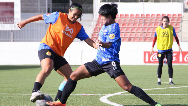ณ สนามหญ้าเทียม ไฟซอล อัล ฮุสเซนี ประเทศปาเลสไตน์ มิโยะ โอกาโมโตะ นำนักฟุตบอลหญิงทีมชาติไทย ลงสนามฝึกซ้อมอย่างต่อเนื่อง เพื่อเตรียมพร้อมสำหรับการแข่งขันฟุตบอลหญิงชิงแชมป์เอเชีย รอบคัดเลือก นัดสุดท้าย พบ ทีมชาติปาเลสไตน์ (เจ้าภาพ)