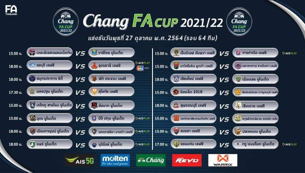 สำหรับโปรแกรมการแข่งขันฟุตบอล ช้าง เอฟเอ คัพ รอบ 64 ทีมสุดท้ายทุกคู่ มีดังนี้