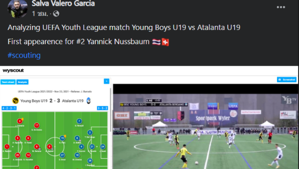 ถือเป็นโค้ชจอมขยันอีกหนึ่งคนสำหรับ ซัลบาดอร์ บาเลโร่ การ์เซีย หรือ ซัลบา เฮดโค้ชทีมชาติไทยชุดยู-19ที่ล่าสุดได้ตามเช็คฟอร์มของ ยานนิค นุสบอม แบ็คซ้ายดาวรุ่งวัย 18 ปี ที่ได้ลงสนามเป็นนัดแรกให้กับ ยัง บอยส์ ยู-19 พบกับ อตาลันต้า ยู-19 ในศึกยูฟ่า ยูธลีก กลุ่มเอฟ