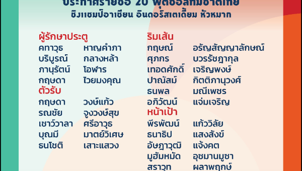 สมาคมฯประกาศรายชื่อ 20 แข้งฟุตซอลทีมชาติไทย ชุดป้องกันแชมป์อาเซียนสมัยที่ 16