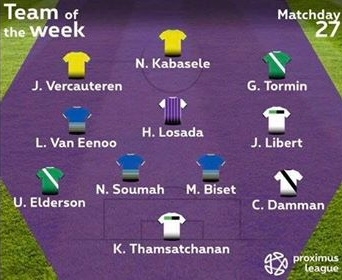 หลังจบแมตช์เดย์ที่ 27 ของทุกทีมลีกรองเบลเยียม ได้มีการประกาศทีมยอดเยี่ยมประจำสัปดาห์ออกมา โดย "เจ้าตอง" ติดโผหลังเซฟจังหวะสำคัญหลายครั้งช่วยให้ต้นสังกัดเสมอ เบียร์ช็อต วิลไรค์ 1-1 เมื่อวันเสาร์ที่ผ่านมา