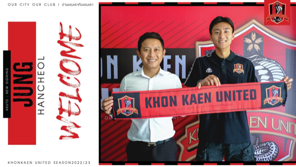 จงอางผยอง ขอนแก่น ยูไนเต็ด ยังเสริมทัพเพิ่มความแกร่งของทีม หลัง “บิ๊กต้อม” วัฒนา ช่างเหลา ประธานสโมสรขอนแก่น ยูไนเต็ด ปิดดีลจรดปากกาเซ็นสัญญาคว้าตัว "จอง ฮัน ซอล" เซนเตอร์แบค ชาวเกาหลีใต้ ที่ทำ 3 ประตูจากการลงสนาม 13 นัด หลังจากเพิ่งย้ายมาเล่นในไทยลีกช่วงเลกสองที่ผ่านมา เข้ามาร่วมทีมในโควต้าเอเซีย ถือเป็นการเสริมทัพรายที่ 2 ต่อจาก ทศพล ชมชน