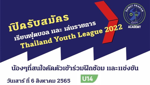 สมุทรปราการ ซิตี้ อะคาเดมี่ เปิดรับสมัคร คัดตัวนักฟุตบอลเข้าร่วมแข่งขันฟุตบอลลีกเยาวชนรายการ Thailand Youth League 2022/23 ณ สนามไดนามิก ฟุตบอล แคมป์ (เกียรติธานี)
