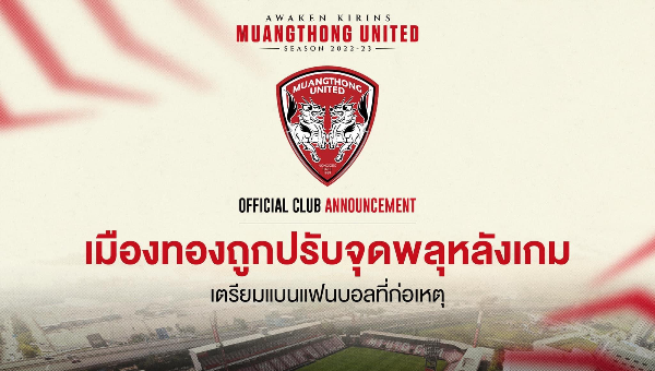 สืบเนื่องจากเกม ไทยลีก 2022-23 เมื่อวันอาทิตย์ที่ 23 ตุลาคม ระหว่าง เมืองทอง ยูไนเต็ด พบ พีที ประจวบ เอฟซี ผู้ควบคุมการแข่งขันรายงานว่า กองเชียร์ เมืองทอง ยูไนเต็ด ที่นั่งอยู่บนอัฒจันทร์ทางด้านทิศใต้ (ฝั่ง S) ได้มีการจุดพลุแฟร์บนอัฒจันทร์รวม 2 ครั้ง ภายหลังจบเกมการแข่งขันประมาณ 15 นาที ซึ่งเป็นการกระทำที่ไม่เหมาะสม ในสถานที่จัดการแข่งขัน