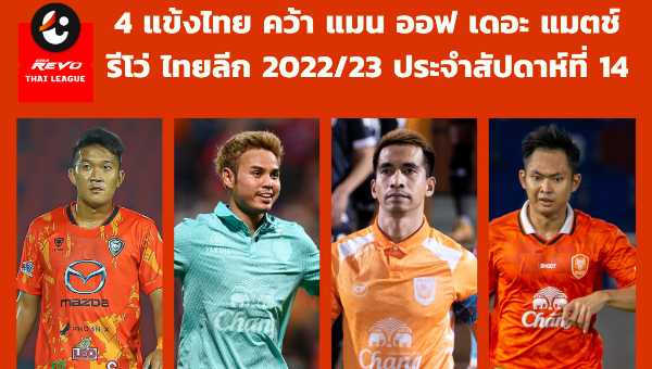 4 แข้งไทย​ คว้า​ แมน ออฟ เดอะ แมตช์ จาก​ 8 เกม​ รีโว่ ไทยลีก​ สัปดาห์​ที่ 14​ ยิงกันรวม 17 ประตู