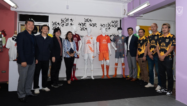 3. ผลงานการออกแบบผลิตภัณฑ์และชุดกีฬาเพื่อสโมสรฟุตบอลสุโขทัย เอฟซี ของนักศึกษาหลักสูตรการออกแบบและธุรกิจแฟชั่น