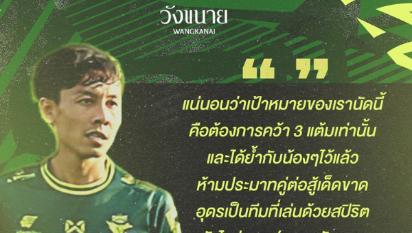โดยก่อนเกม "กัปตันแมน"มงคลชัย กองจำปา เผยว่า "แน่นอนว่าเป้าหมายของเรานัดนี้ คือต้องการคว้า 3 แต้มเท่านั้น และได้ย้ำกับน้องๆไว้แล้วว่าห้ามประมาทคู่ต่อสู้เด็ดขาด อุดรเป็นทีมที่เล่นด้วยสปิริต ยังไงฝากแฟนบอลชัยนาททุกคน ช่วยเป็นกำลังใจให้กับพวกเราด้วยนะครับ"