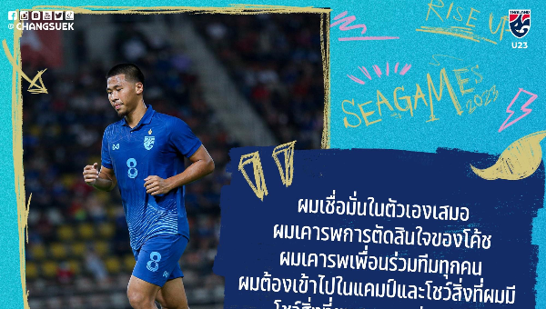 "ซีเกมส์ครั้งก่อนเราทำได้แค่เกือบ ผมพูดมาตลอดในตอนนั้นที่ผมติดทีมชาติครั้งแรกว่าผมต้องการเหรียญทอง ผมชอบความรู้สึกของการเป็นแชมป์ พอได้แค่เกือบ มันรู้สึกไม่ชอบ มาปีนี้ผมก็ได้คุยกับ โจนาธาร หรือเพื่อนๆที่ติดในซีเกมส์ครั้งนั้นว่าปีนี้จริงจังนะ ไม่ว่าฟอร์มจะดี หรือไม่ดีอย่างไร เราต้องได้เหรียญทอง แล้วก็จะทำผลงานให้ดีที่สุด"