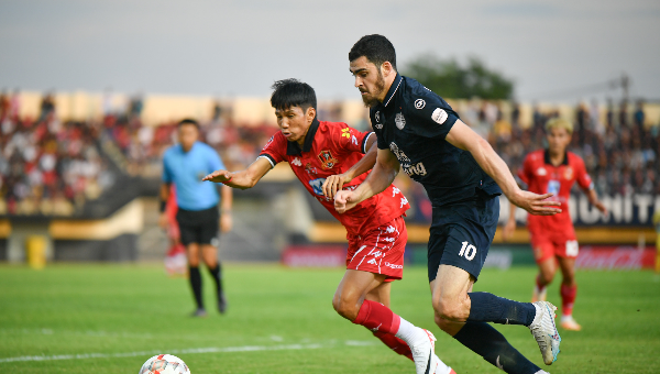 นาทีที่ 21 รัตนากร ใหม่คามิ ขึ้นเกมไปจนสุดเส้นหลังฝั่งขวาเปิดบอลเข้าไปกลางกรอบเขตโทษ ลอนซานา ดุมบูญา ได้โหม่งบอลไปแฉลบหัวกองหลังเจ้าถิ่นออกหลังไป