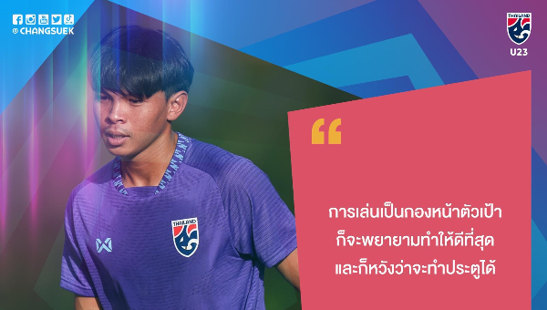 กองหน้าทีมชาติไทย รุ่นอายุไม่เกิน 23 ปี ให้สัมภาษณ์ถึงเป้าหมายและความพร้อมก่อนประเดิมสนามฟุตบอลชิงแชมป์อาเซียน รุ่นอายุไม่เกิน 23 ปี 2023 พบกับเมียนมา