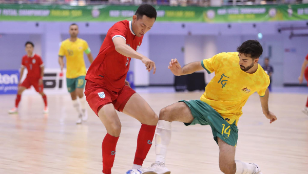 วันอาทิตย์ 24 มีนาคม 2567 ที่ยิมเนเซียม 4,000 ที่นั่ง สนามกีฬา อบจ.นนทบุรี การแข่งขันฟุตซอล NSDF FUTSAL CHAMPIONSHIP THAILAND 2024 นัดแรก ฟุตซอลทีมชาติไทย อันดับ 25 ของโลก ลงสนามพบ ออสเตรเลีย อันดับ 36 ของโลก