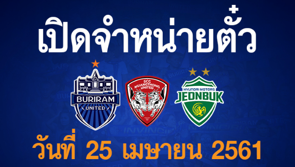 25 เมษายน 2561 เวลา 09.00 น. บุรีรัมย์ ยูไนเต็ด เตรียมเปิดขายตั๋ว 2 เกมซูเปอร์บิ๊กแมตช์ ปราสาทสายฟ้า พบ เมืองทอง ยูไนเต็ด ในศึกไทยลีก และพบ ชุนบุค ฮุนได มอเตอร์ส ในศึกเอเอฟซี แชมเปี้ยนส์ลีก รอบ 16 ทีมสุดท้าย
