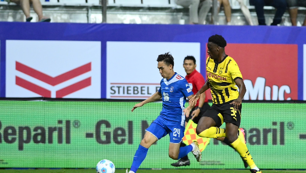 เริ่มเกมทั้งสองทีมบุกเข้าใส่กันทันที นาทีที่ 14 บีจี ปทุม ยูไนเต็ด ขึ้นนำก่อนจากจังหวะที่ ธีรศิลป์ แดงดา จ่ายทะลุช่องให้ เมลวิน ลอเรนเซ่น หลุดเข้าไปยิงให้ทัพ "เดอะ แรบบิท" ขึ้นนำ 1-0 นาทีที่ 18 ดอร์ทมุนด์ พลาดได้ประตูตีเสมออย่างน่าเสียดายจากจังหวะที่ ยูเลียน บรันด์ท หลุดเดี่ยวขึ้นมาก่อนจ่ายให้ คาริม อเดเยมี ยิงโล่ง ๆ แต่โดนบอลไม่ดีหลุดเสาออกไปอย่างเหลือเชื่อ