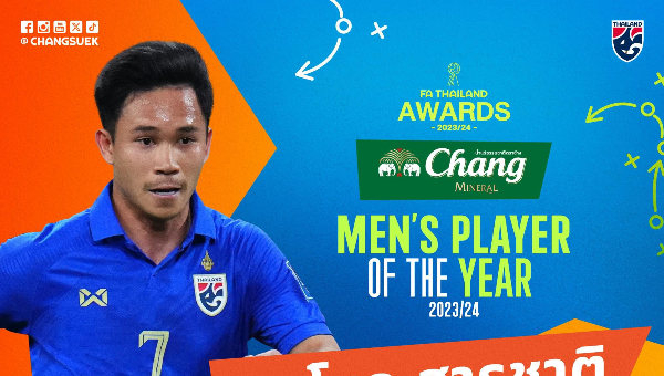 รางวัลนักฟุตบอลชายยอดเยี่ยมแห่งปี : ช้าง MEN'S PLAYER OF THE YEAR 2023/24 ได้แก่ สุภโชค สารชาติ สโมสรคอนซาโดเล ซัปโปโร่