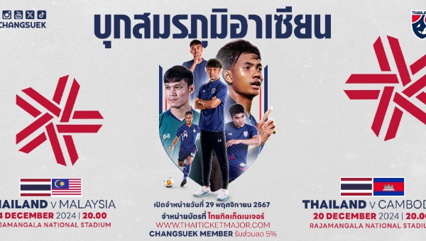เชียร์ "ช้างศึก" ป้องกันแชมป์! 29 พ.ย. นี้ ไทย ทิคเกต เปิดขายบัตร สองเกมเหย้า "ทีมชาติไทย" สู้ศึก อาเซียน คัพ 2024